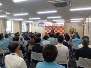 中部電気保安協会 名古屋支店・名古屋北営業所 開所式 2025年9月26日 9/25(木)中部電気保安協会 名古屋支店・名古屋北営業所の開所式でした。 理事長の挨拶からテープカットと行われました。 今から2期工事として旧事務所の解体工事が始まります。 竣工まで安全作業に努めます。