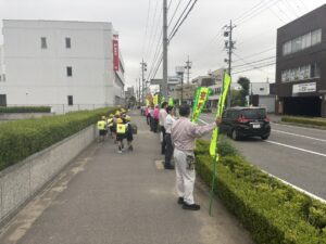 朝の交通安全啓蒙活動 2025年10月15日 10/10(金)ゼロのつく日なので本社前の歩道より、通勤する車に向け安全運転の旗をかかげ交通安全を呼びかけました。 沢山の社員が参加してくれました。 安全運転に気をつけましょう。